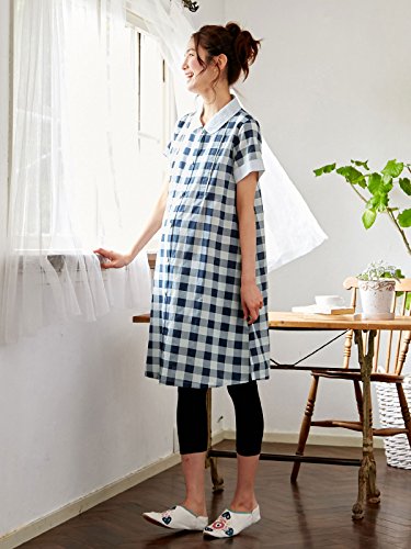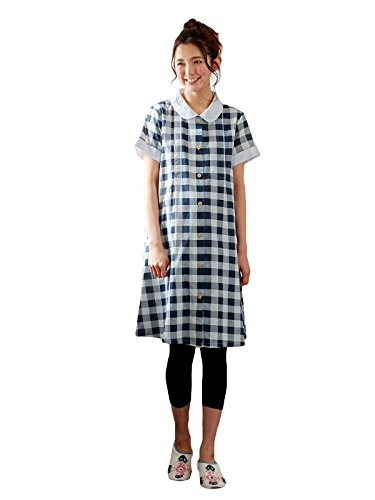 Angeliebe エンジェリーベ 授乳 口 付 ソフト キャン ブロック チェック パジャマ フリー ネイビー
