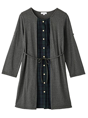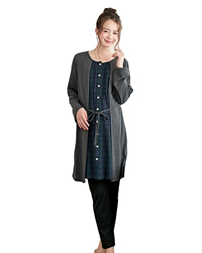 Angeliebe エンジェリーベ 授乳 口 付 ビエラ 先染め チェック × カットソー レイヤード パジャマ L チャコール