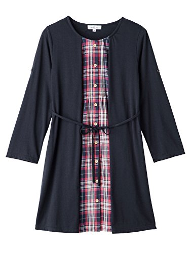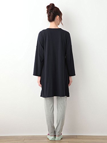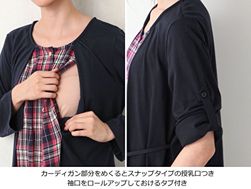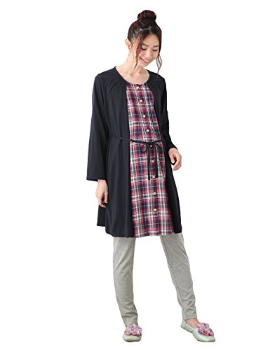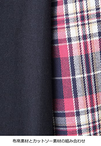 Angeliebe エンジェリーベ 授乳 口 付 ビエラ 先染め チェック × カットソー レイヤード パジャマ M ネイビー
