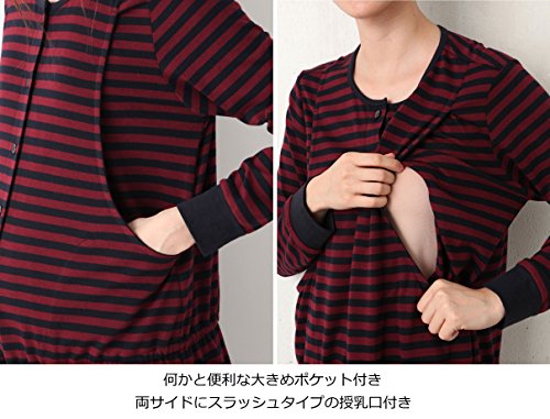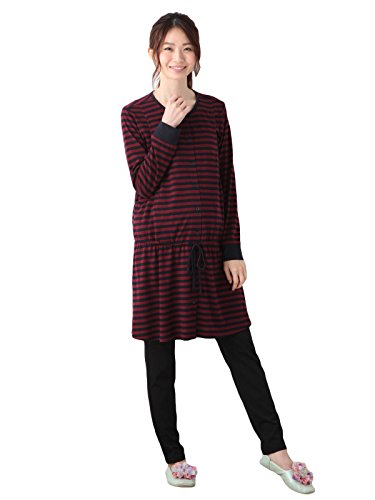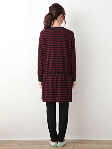 Angeliebe エンジェリーベ 授乳 口 付 先染め カットソー ボーダー × 無地 パンツ パジャマ M ワイン