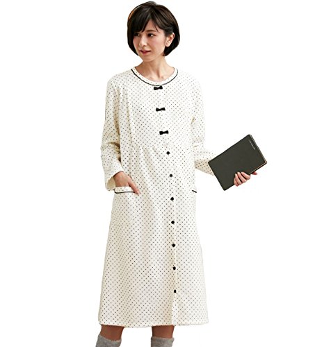 Angeliebe エンジェリーベ 授乳 口 付 裏 起毛 ドット ネグリジェ M アイボリー