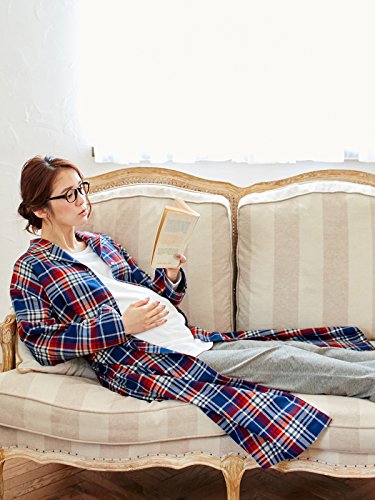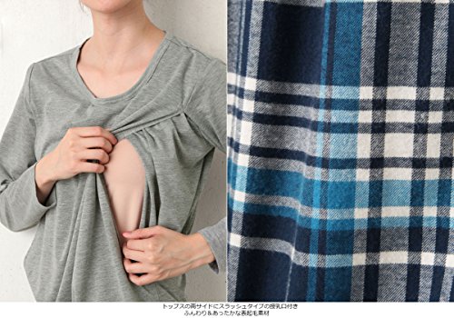 Angeliebe エンジェリーベ 授乳 口 付 産後 も 使える パンツ 付 3点 セット パジャマ M ~ L ブルー チェック
