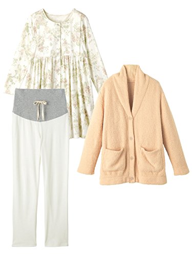Angeliebe エンジェリーベ 授乳 口 付 ふんわり カーデ 付き 3点 セット パジャマ M ~ L ベージュ 系