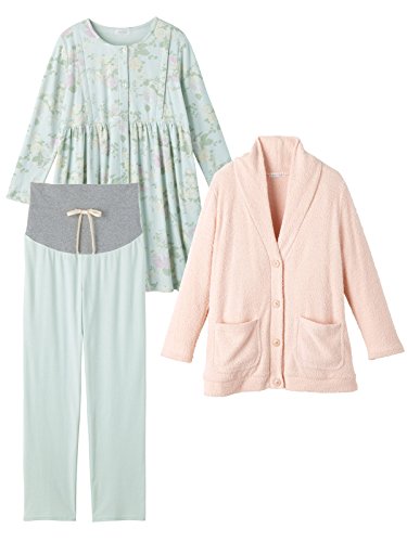 Angeliebe エンジェリーベ 授乳 口 付 ふんわり カーデ 付き 3点 セット パジャマ M ~ L ピンク 系