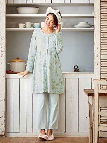 - ●サイズM~L:(ガウン)身丈72㎝、バスト104㎝、肩幅42㎝、袖丈55㎝、(パジャマ)身丈90㎝、バスト104㎝、肩幅38㎝、袖丈56㎝、わたり33㎝、裾幅19㎝、脇丈110㎝、股下72㎝