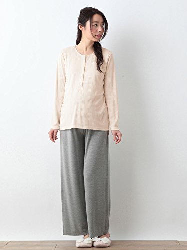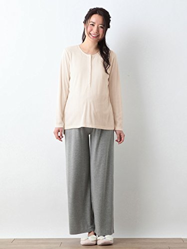 Angeliebe エンジェリーベ マタニティ パジャマ 授乳口付き ふんわり パターン メッシュ ヘンリーネック ナイティ 妊婦服 産前 産後 セット M ~ L アイボリー 21777 21777402
