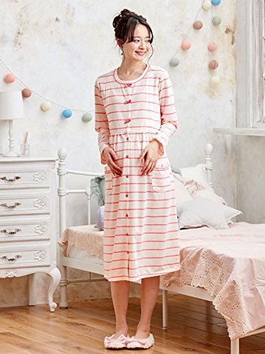 - ●【パンツなしでも着られる長め丈&前開きデザインは入院着にぴったり】ロング丈でパンツなしでも着られるネグリジェは、脱ぎ着が多い入院着としても便利。カジュアルなボーダーを、ネックラインのレース風ピコでガーリーに仕上げました。