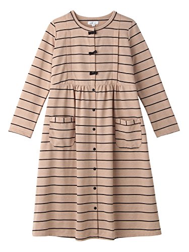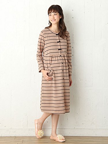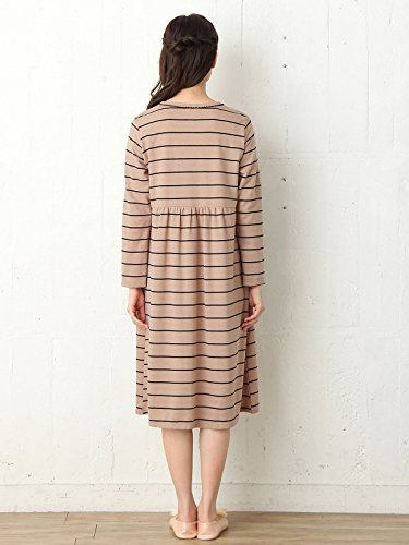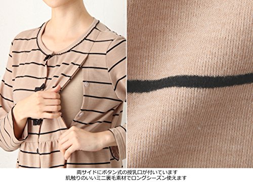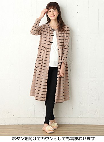 Angeliebe エンジェリーベ マタニティ パジャマ 授乳口付き ミニ 裏毛 ボーダー ネグリジェ ガウン 妊婦服 産前 産後 羽織もの 前開き (mutti ei) M ベージュ 21875 21875260