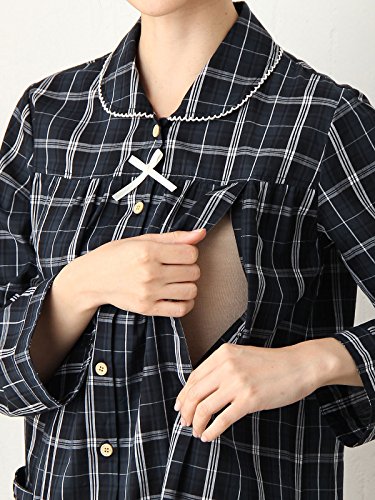 Angeliebe エンジェリーベ マタニティ パジャマ 授乳口付き 平織 チェック ナイティ 妊婦服 産前 産後 長袖 前開き アジャスター調節可 (mutti ei) L ブラック 21793 21793170