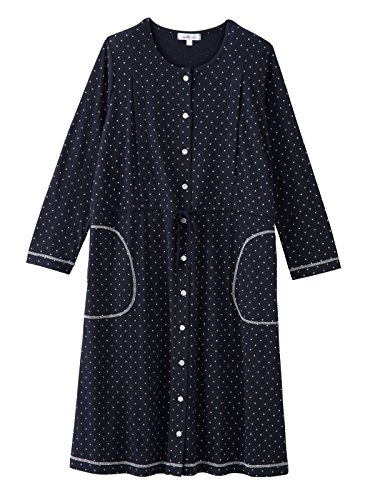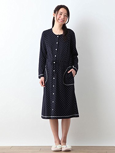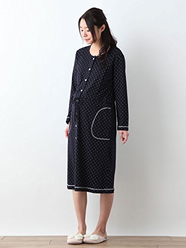 Angeliebe エンジェリーベ マタニティ パジャマ 授乳口付き コットン 混 天竺 ドット プリント ネグリジェ ガウン ナイティ 妊婦服 産前 産後 長袖 前開き (mutti ei) L ネイビー 21795 21795370