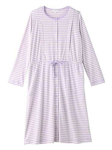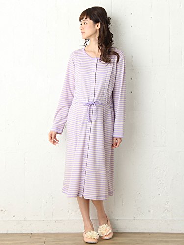 Angeliebe エンジェリーベ マタニティ パジャマ 授乳口付き スムース ボーダー ネグリジェ 妊婦服 産前 産後 前開き (mutti ei) M ラベンダー 21932 21932360
