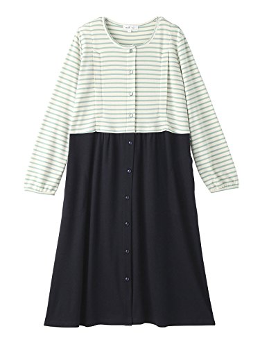 - ●【トップスとスカートを組み合わせたようなメリハリデザイン。ホームウエアにもおすすめ】定番人気のボーダーを、無地の切替えでメリハリ感をプラス。きちんと感があるのでホームウエアとしても着られます。両サイドにボタン式の授乳口付。便利な大きめポケットも付いています。