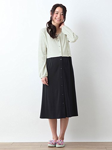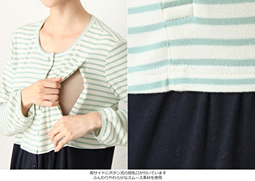 Angeliebe エンジェリーベ マタニティ パジャマ 授乳口付き スムース ボーダー 無地 切替 ネグリジェ 妊婦服 産前 産後 前開き (mutti ei) M ライト グリーン 21933 21933260