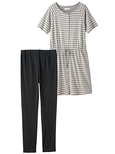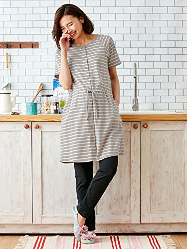 Angeliebe エンジェリーベ マタニティ パジャマ 授乳しやすい ウエスト リボン ボーダー ナイティ 授乳服 産前 産後 前開き 半袖 M ~ L グレー 21896 21896202