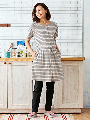 - ●【チェック×無地のパンツを組み合わせてホームウエア風に】先染めボーダーを、ウエストリボンデザインのワンピースでフェミニンに仕上げました。動きやすく、リラックス感のあるラグランスリーブが高ポイント。これからの季節にぴったりな半袖です。両サイドにポケット付き。