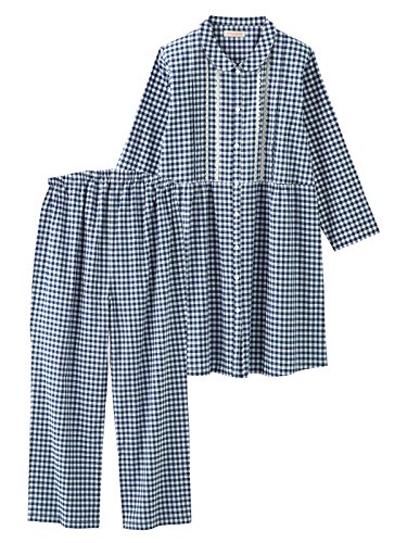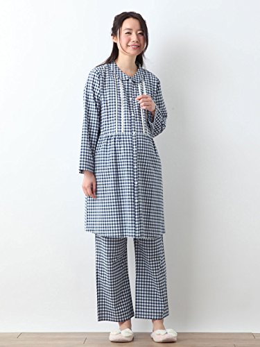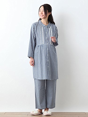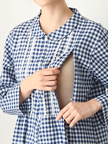 Angeliebe エンジェリーベ マタニティ パジャマ 授乳口付き ブロード ギンガム ナイティ 妊婦服 産前 産後 前開き フリー ネイビー 21751 21751100