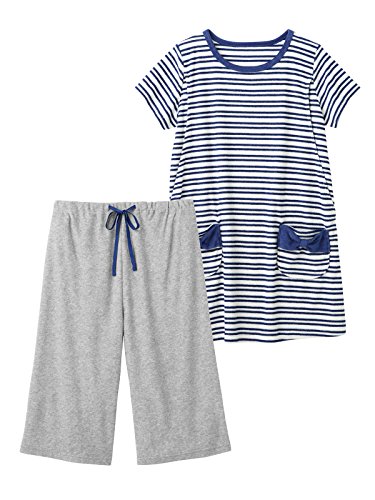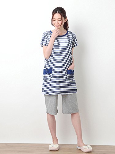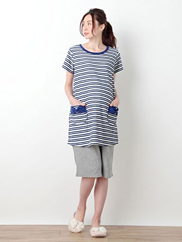 Angeliebe エンジェリーベ マタニティ パジャマ 授乳口付き パイル 半袖 ナイティ 授乳服 半ズボン 産前 産後 セット M ~ L ボーダー ネイビー 21785 21785202