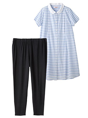 Angeliebe エンジェリーベ マタニティ パジャマ 授乳口付き シャンブレー ボーダー ナイティ 妊婦服 産前 産後 半袖 前開き フリー ブルー 21902 21902100