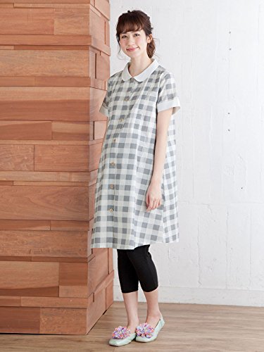 Angeliebe エンジェリーベ マタニティ パジャマ 授乳口付き ソフトキャン ブロック チェック ナイティ 妊婦服 産前 産後 半袖 前開き フリー グレー 21903 21903300