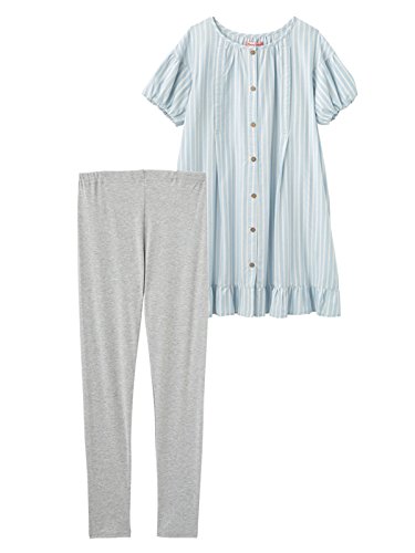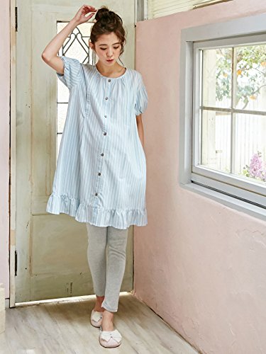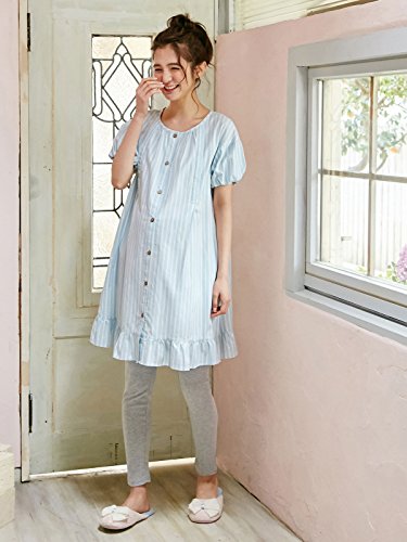 Angeliebe エンジェリーベ マタニティ パジャマ 授乳口付き バルーン袖 ストライプ柄 ナイティ 妊婦服 (MAMMY LUNA) 産前 産後 半袖 前開き セット M ~ L ブルー 21781 21781202