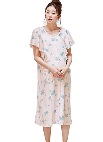 Angeliebe エンジェリーベ マタニティ パジャマ 授乳口付き ラッフル スリーブ 2WAY ネグリジェ 妊婦服 産前 産後 半袖 前開き フリー ピンク 21778 21778100