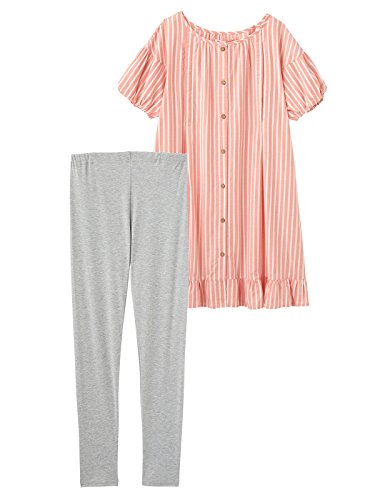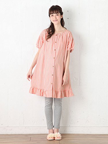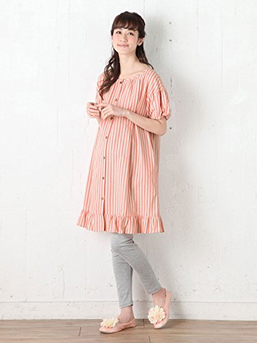 Angeliebe エンジェリーベ マタニティ パジャマ 授乳口付き バルーン袖 ストライプ柄 ナイティ 妊婦服 (MAMMY LUNA) 産前 産後 半袖 前開き セット M ~ L ピンク 21781 21781102