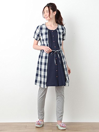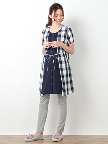 Angeliebe エンジェリーベ マタニティ パジャマ 授乳口付き チェック × 天竺 レイヤード風 ナイティ 妊婦服 産前 産後 半袖 前開き M ネイビー 21823 21823260