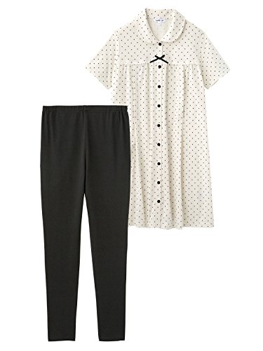 Angeliebe エンジェリーベ マタニティ パジャマ 授乳口付き 天竺 ドット ワンピ & 無地 パンツ ナイティ 妊婦服 産前 産後 半袖 前開き M アイボリー 21822 21822160