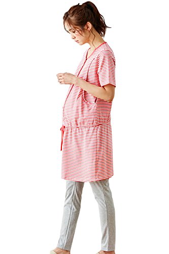 - ●【産前~産後まで使える授乳口付き天竺ボーダーワンピ&無地パンツパジャマ】軽くて着心地のいい天竺素材を使用。両サイドにスラッシュタイプの授乳口が付いています。授乳口の下にポケット付き。パンツは、大きなお腹もやさしく包み込み、穴あきゴムでウエスト調整もできます。