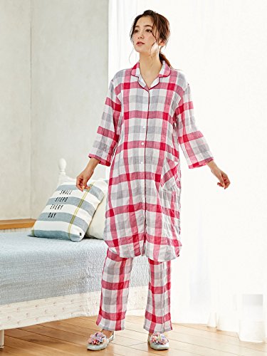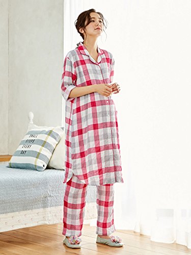 Angeliebe エンジェリーベ マタニティ パジャマ 授乳口付き 先染 ダブルガーゼ 七分袖 チェック ナイティ 妊婦服 産前 産後 前開き M~L レッド 21973 21973100