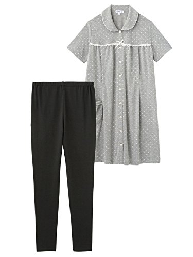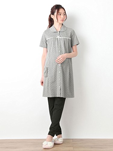 Angeliebe エンジェリーベ マタニティ パジャマ 授乳口付き 天竺 ドット ワンピ & 無地 パンツ ナイティ 妊婦服 産前 産後 半袖 前開き M グレー 21822 21822260