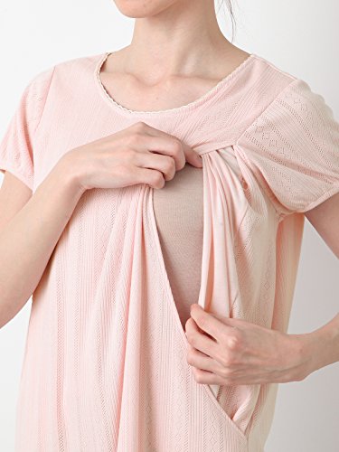 Angeliebe エンジェリーベ マタニティ パジャマ 授乳口付き レース付き パターン メッシュ ナイティ 妊婦服 産前 産後 M ~ L アイボリー 21779 21779102