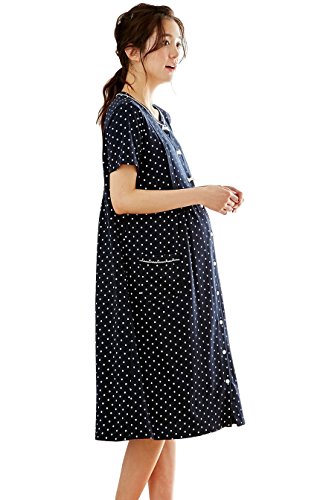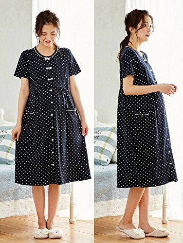 Angeliebe エンジェリーベ マタニティ パジャマ 授乳口付き カットソー ドット プリント ネグリジェ ガウン 妊婦服 産前 産後 前開き M ネイビー 21830 21830260