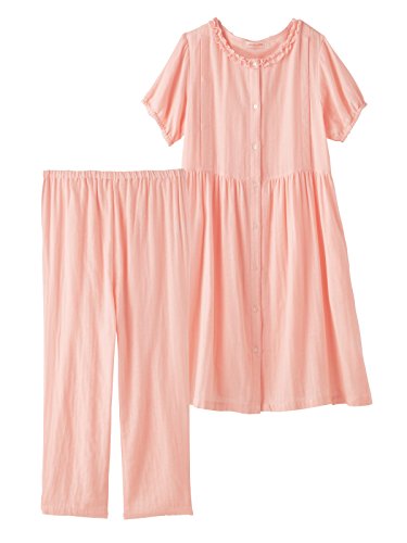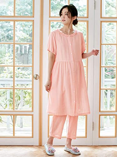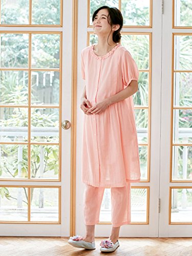 Angeliebe エンジェリーベ マタニティ パジャマ 授乳口付き ダブルガーゼ 半袖 フリル ナイティ 妊婦服 産前 産後 前開き アジャスター調節可 M ~ L ピンク 22044 22044202