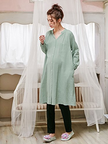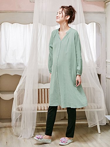 - ●【産前~産後まで使えるギャザーやわらかガーゼパジャマ】肌あたりも優しい綿100%のダブルガーゼ素材。袖口にゴムが入っているので腕まくりも簡単。第2、第3ボタンがスナップボタンになっているので授乳も楽々。スパッツなしでも着られる長め丈&フロントが全開になるデザインで入院着にもおすすめです。