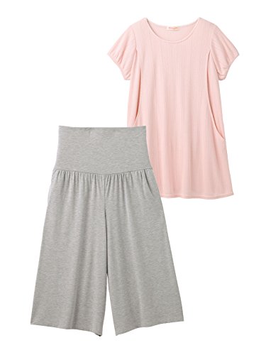 - ●【ホームウエアとしても着られるフェミニンコンビ】パジャマっぽくないデザインでホームウエアとしても使える上下セット。長めのチュニック&ガウチョのゆったりとしたシルエットが今年らしい雰囲気です。ガーリッシュな針抜き素材にパフスリーブやレースなどで甘さをプラス。