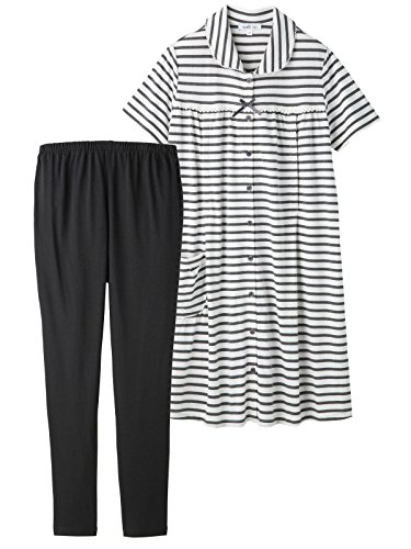 - ●【定番人気のワンピースを、初夏カラーのボーダーで爽やかに】やわらかく着心地のいい天竺素材を使用。衿付きなのできちんと感があり、ホームウエアや入院着としてもおすすめ。