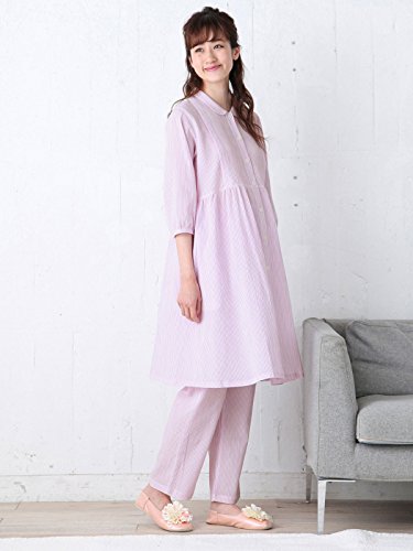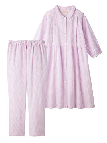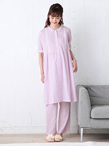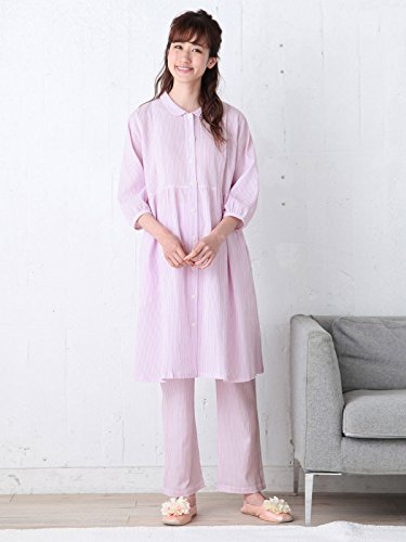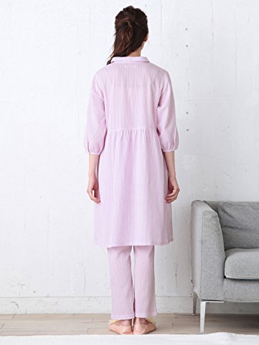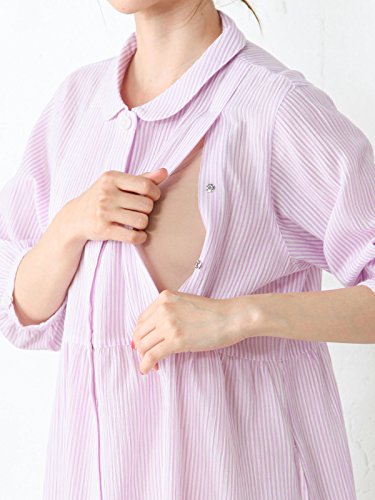 Angeliebe エンジェリーベ マタニティ パジャマ 授乳口付き 軽やか 楊柳 ストライプ 七分袖 ナイティ 産前 産後 前開き 妊婦服 M~L ピンク 21972 21972100