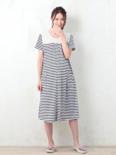 Angeliebe エンジェリーベ マタニティ パジャマ 授乳口付き カットソー ボーダー ネグリジェ ガウン 妊婦服 産前 産後 前開き L オフ21827 21827270