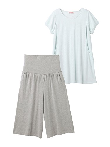 - ●【ホームウエアとしても着られるフェミニンコンビ】パジャマっぽくないデザインでホームウエアとしても使える上下セット。長めのチュニック&ガウチョのゆったりとしたシルエットが今年らしい雰囲気です。ガーリッシュな針抜き素材にパフスリーブやレースなどで甘さをプラス。