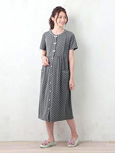 Angeliebe エンジェリーベ マタニティ パジャマ 授乳口付き カットソー ドット プリント ネグリジェ ガウン 妊婦服 産前 産後 前開き L グレー 21830 21830170