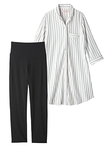Angeliebe エンジェリーベ マタニティ パジャマ 授乳しやすい ストライプ 前開き ナイティ 妊婦服 産前 産後 対応 パンツ 付き S ~ M グレー 22041 22041201
