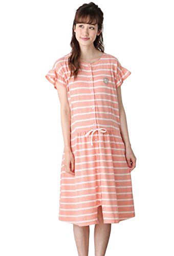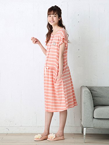 Angeliebe エンジェリーベ マタニティ パジャマ 授乳口付き ジャガード カットソー ボーダー 2WAY ネグリジェ 妊婦服 産前 産後 前開き 半袖 M オレンジ 21831 21831270