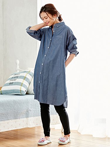 - ●【ワンマイルウェアとしても使えるワンピ&レギンス。ナチュラルな色合いが◎】製品洗い加工によるナチュラルブルーが爽やかなホームウェアです。インディゴ染ではないので色落ちしにくく、お洗濯も楽々。きちんと感のある襟付きデザインのシャツワンピースは、ワンマイルウェアとしても使えて便利。