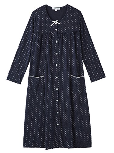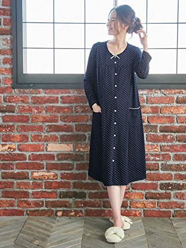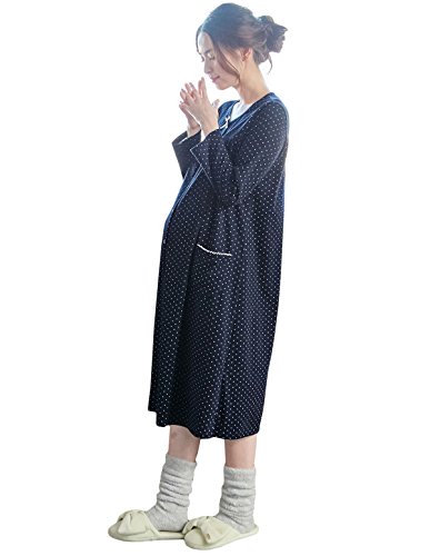 Angeliebe エンジェリーベ マタニティ パジャマ T/C天竺 ドット プリント ネグリジェ ガウン 妊婦服 産前 産後 長袖 前開き M ネイビー 21958 21958260