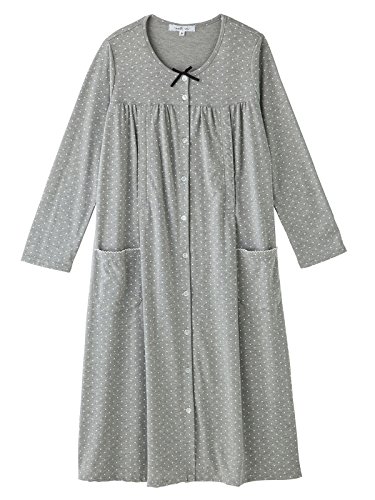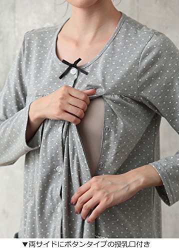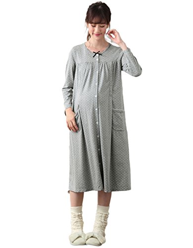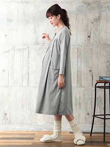 Angeliebe エンジェリーベ マタニティ パジャマ T/C天竺 ドット プリント ネグリジェ ガウン 妊婦服 産前 産後 長袖 前開き M グレー 21958 21958160