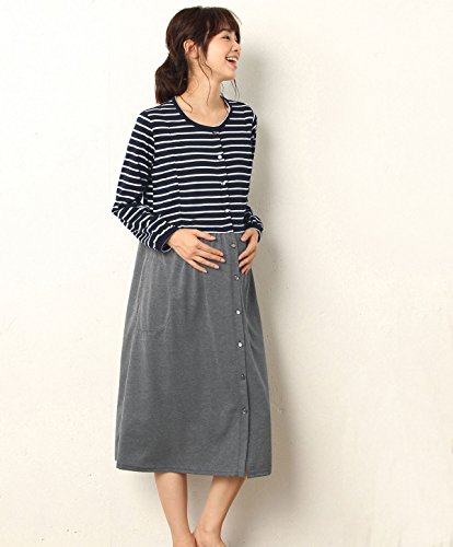 - ●【産前~産後まで使える授乳口付きT/C天竺ボーダー×無地ネグリジェ】肌触りのいいやわらか天竺素材。コロンとしたキャンディーボタンがアクセント。両サイドにボタンタイプの授乳口付き。パンツなしでも着られる長め丈で入院着にもおすすめです。