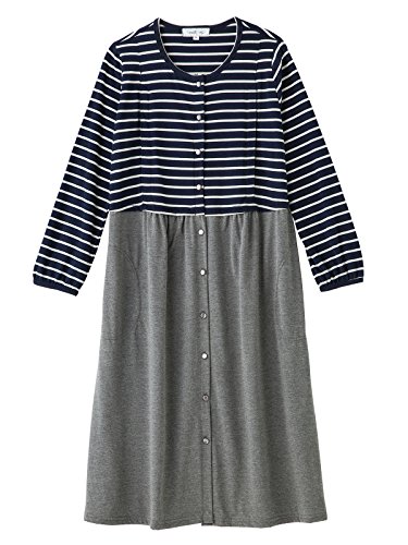 - ●【ホームウエアとしても着まわせるきちんと感のあるデザイン。入院着にもおすすめです】ベーシックなボーダートップス×無地のコンビネーションで飽きずに着られるネグリジェです。締め付け感のないシルエットと肌触りのいい天竺素材で着心地抜群。きちんと感のあるデザインなので、ホームウエアとしても使えて急な来客にも慌てず対応可能。