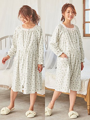 Angeliebe エンジェリーベ マタニティ パジャマ 授乳口付き T/C天竺 小物柄 プリント 2WAY ネグリジェ 妊婦服 産前 産後 前開き ロンパース M アイボリー 21957 21957160