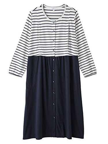 - ●【産前~産後まで使える授乳口付きT/C天竺ボーダー×無地ネグリジェ】肌触りのいいやわらか天竺素材。コロンとしたキャンディーボタンがアクセント。両サイドにボタンタイプの授乳口付き。パンツなしでも着られる長め丈で入院着にもおすすめです。